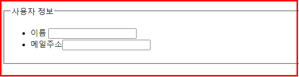 아래와 같이 <fieldset>태그와 <legend> 태그가 적용된 것을 확인할 수 있습니다. (CSS를 사용하여 폼을 꾸밀 수 있습니다.)