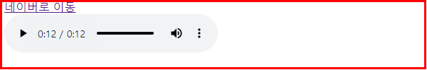 autoplay, controls 속성을 적용하였기 때문에 바로 오디오 파일이 재생되면 화면에 컨트롤 막대가 표시되는 것을 확인합니다.