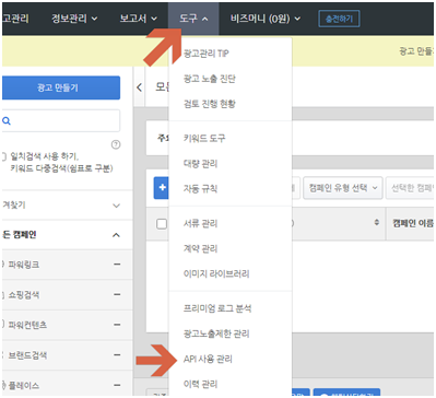 “도구”와 “API 사용 관리” 클릭! 클릭!