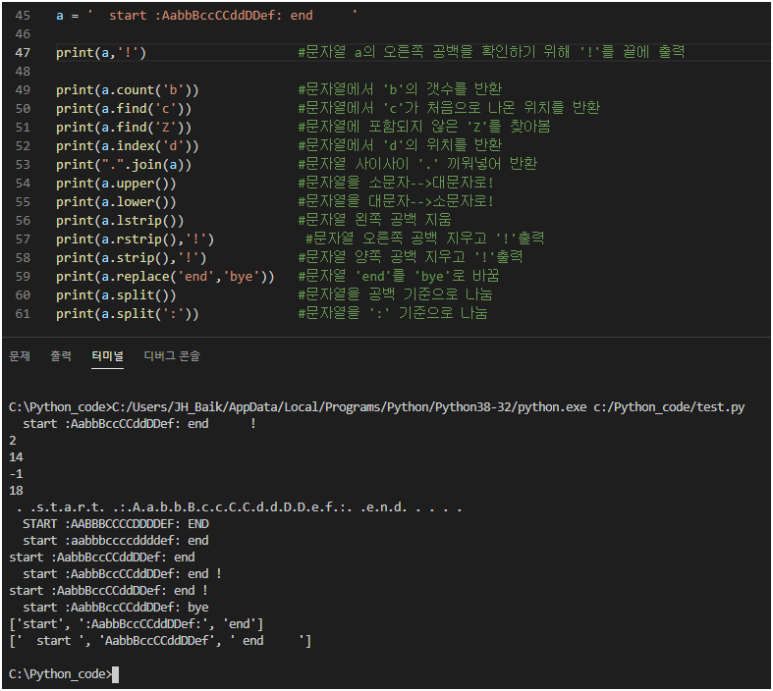 그리고 [‘a’, ‘b’ , ’c’]의 형태는 리스트(배열)를 나타내는 것으로 다음 시간에 알아보도록 하겠습니다.