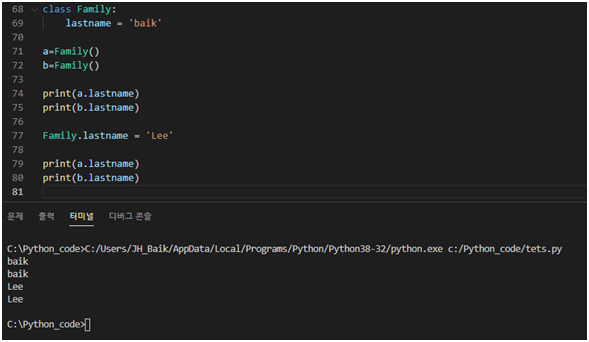 객체 변수는 서로 간에 영향을 끼치지 않고 자유롭게 사용 가능한 반면, 클래스 변수는 아래와 같이 객체가 많더라도 같은 주소를 가리키기 때문에 같은 값을 가지게 됩니다.