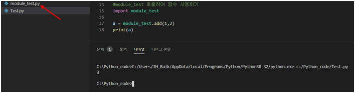 Test.py에서 module_test.py를 import하여 함수를 사용해 봅니다. 문제없이 실행되는 것을 알 수 있습니다.