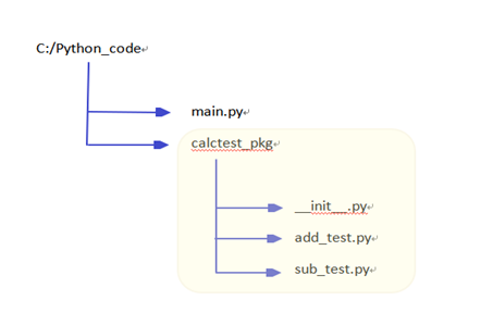 add_test.py와 sub_test.py를 작성하여 __init__.py 함께 calctest_pkg폴더에 넣고 c:/python_code폴더 에서 main.py를 작성 합니다.