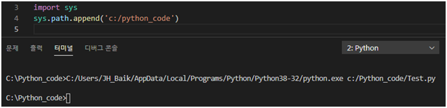 ['', 'C:\\Users\\JH_Baik\\AppData\\Local\\Programs\\Python\\Python38-32\\python38.zip', (중간 생략) 'C:\\Users\\JH_Baik\\AppData\\Local\\Programs\\Python\\Python38-32\\lib\\site-packages']