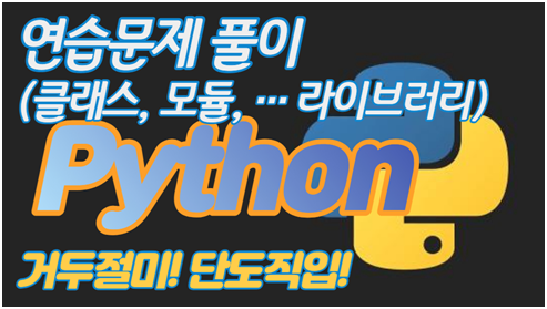 오늘은 그동안 살펴본 클래스, 모듈, 패키지, 라이브러리에 대한 연습문제를 풀어보고자 합니다. 금방 풀어버릴 수 있을 것 같았는데 바로 저의 오만방자함을 일깨우듯 에러투성이더군요. 구글링(파이썬 공식 홈페이지)+오픈북^^ 하며 풀어갔습니다. 시간이 다소 걸리더라도 한번 풀어보시길 권장합니다. 직접 책을 찾고 구글링하며 얻어지는 게 있더군요.