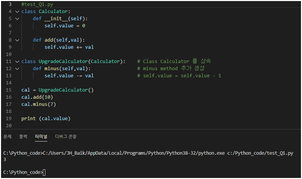 위 클래스 상속하는 UpgradeCalculator를 만들고 값을 뺄 수 있는 minus 메서드를 추가해 봅니다.
