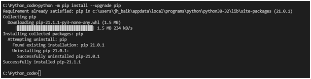 pip 업그레이드까지 성공적으로 마쳤습니다.